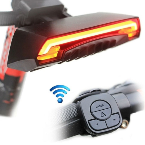 Enhance your safety during night rides with this smart rear light. The powerful LEDs and side laser beams create a clear visibility zone on the road. Easily control the turn signals with the wireless remote attached to the handlebars.